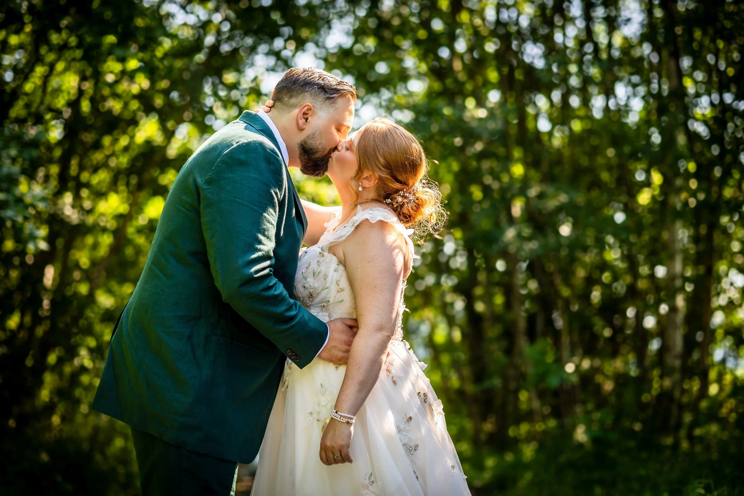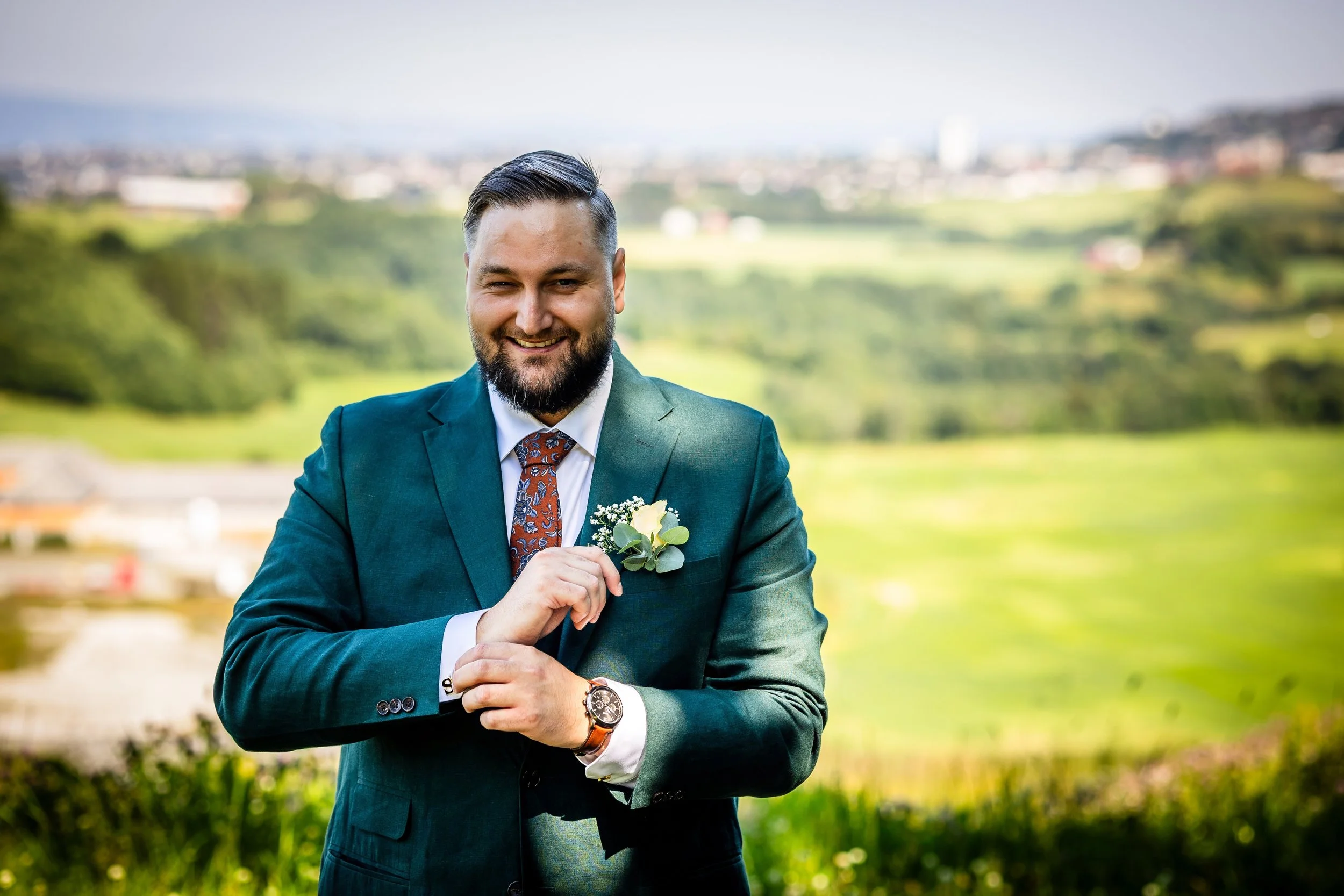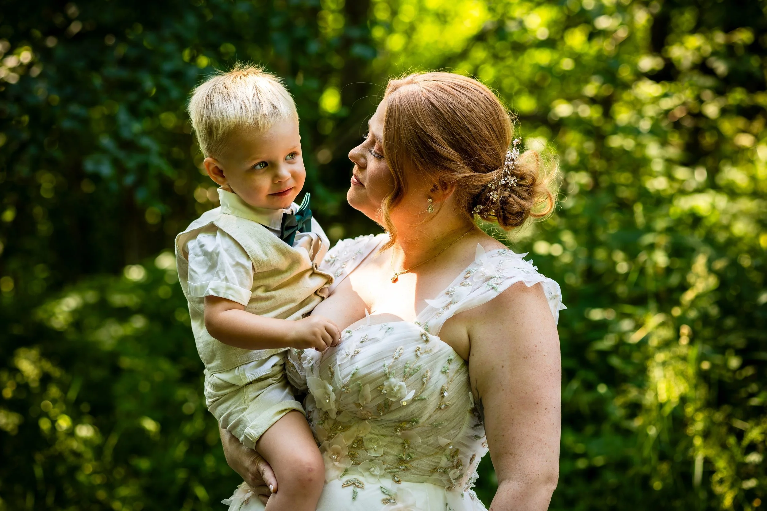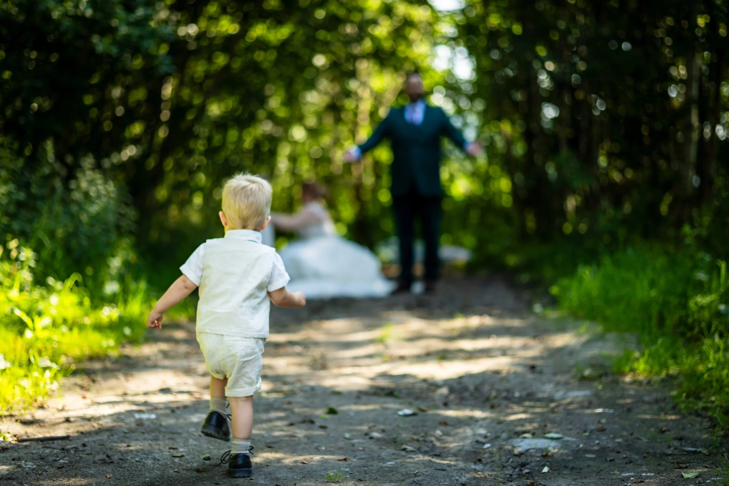 Bryllupsfesten ble feiret på vakre Lerflaten gård. Før seremonien hadde de en rørende first look sammen med barna – et øyeblikk der de fikk se hverandre i bryllupsantrekket for aller første gang.